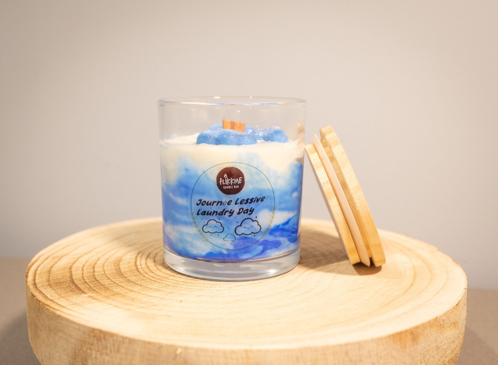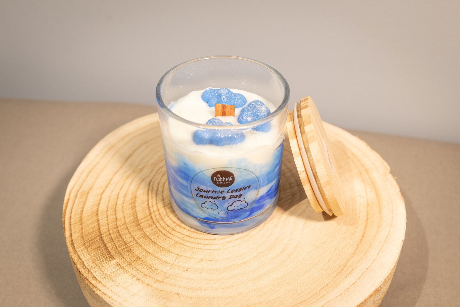 Bougie cire de soja 8 oz au parfum frais de lessive.